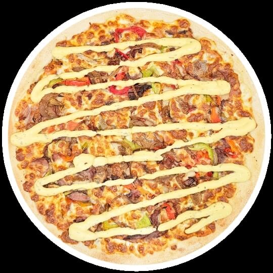 12" Large Pizza. Premium Roast Beef, Fresh & Roasted Capsicum, Mushrooms, Caramalised Onion, on a Pecorino Cheese Base, Garnished with Bernaise Sauce. Topped with Australian Mozzarella Cheese